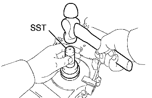 b. Using SST and a hammer, tap in the new oil seal until its surface is flush with the timing chain cover edge.