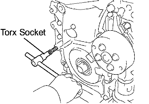 e. Using a Torx socket E10, install the stud bolt for the V-ribbed belt tensioner.