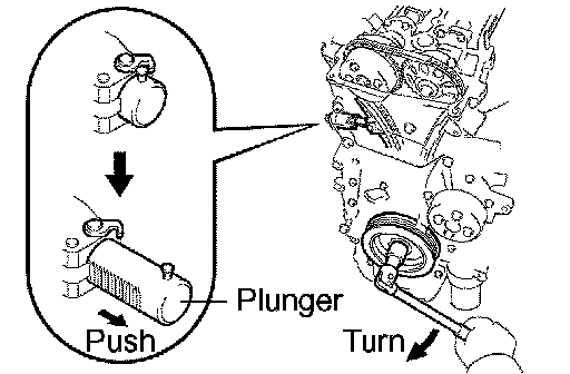 c. Turn the crankshaft clockwise, then check that the plunger is extended.