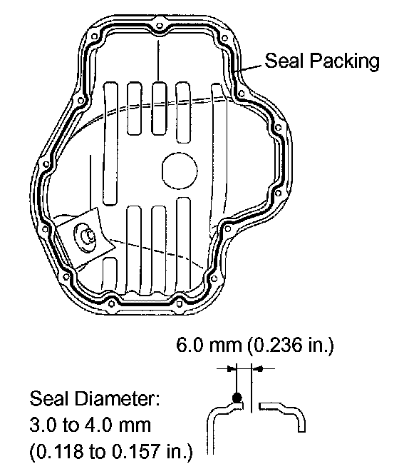 b. Apply a continuous bead of seal packing (Diameter 3.0 to 4.0 mm (0.118 to 0.157 inch)) as shown in the illustration.