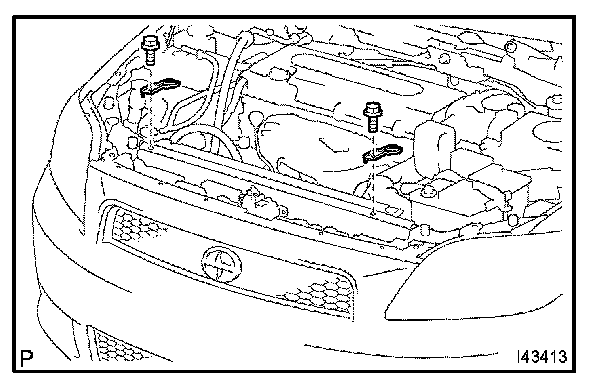 a. Remove the 2 bolts and the 2 radiator support upper.
