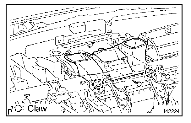 a. Release the 2 claws and remove the defroster nozzle assembly lower.