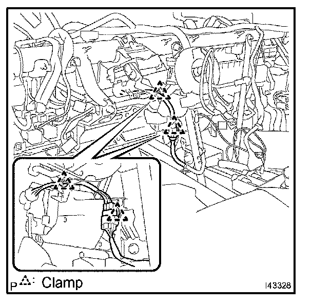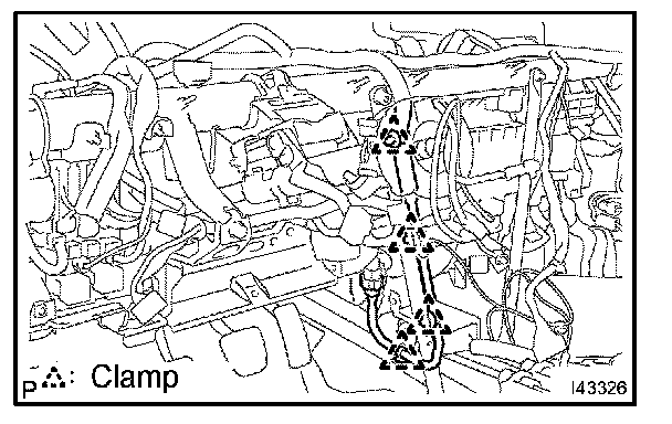 HINT: Make sure the direction of the piping clamp claw and SST by checking the illustration on the caution label.