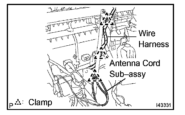 b. Disconnect the clamp and separate the antenna cord sub-assembly.
