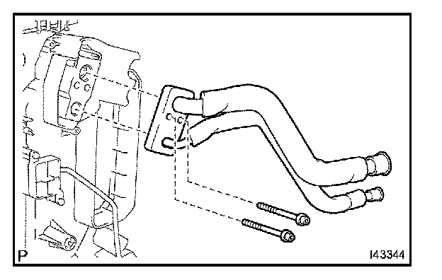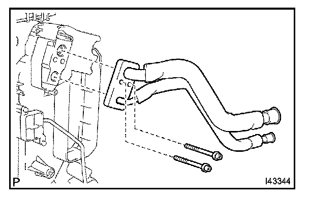 c. Using a hexagon wrench 4.0 mm (0.15 in.), remove the 2 hexagon bolts and the air conditioning tube assembly.