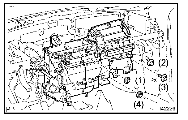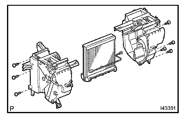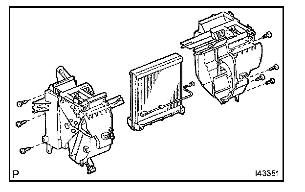 b. Install the cooler evaporator sub-assembly No.1 on the heater case with the 7 screws.