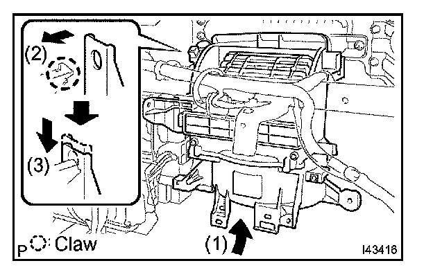 b. Release the 2 claws and remove the heater to register duct No.3.