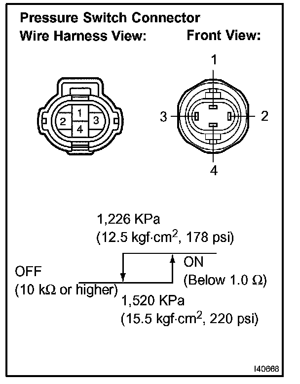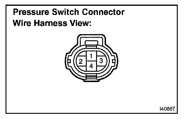 b. Disconnect the pressure switch connector and connect terminals 1 and 4 using a tool such as a service wire.