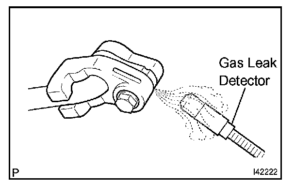 c. Using a gas leak detector, check for leakage of the refrigerant line.