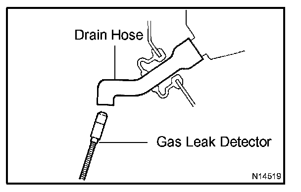 - When bringing the gas leak detector close to the drain hose, make sure that the gas leak detector does not react to the volatile gases.