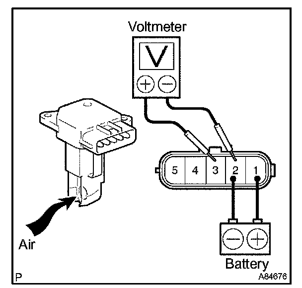 3. Blow air into the mass air flow meter, then check that the voltage fluctuates.
