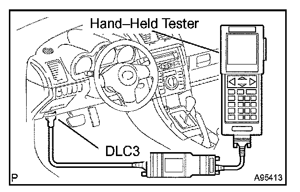 To check DTCs, connect a hand-held tester or OBD II scan tool to the DLC3. The tester and scan tool display DTCs, freeze frame data, and a variety of engine data. The DTCs and freeze frame data can be erased with the tester and scan tool