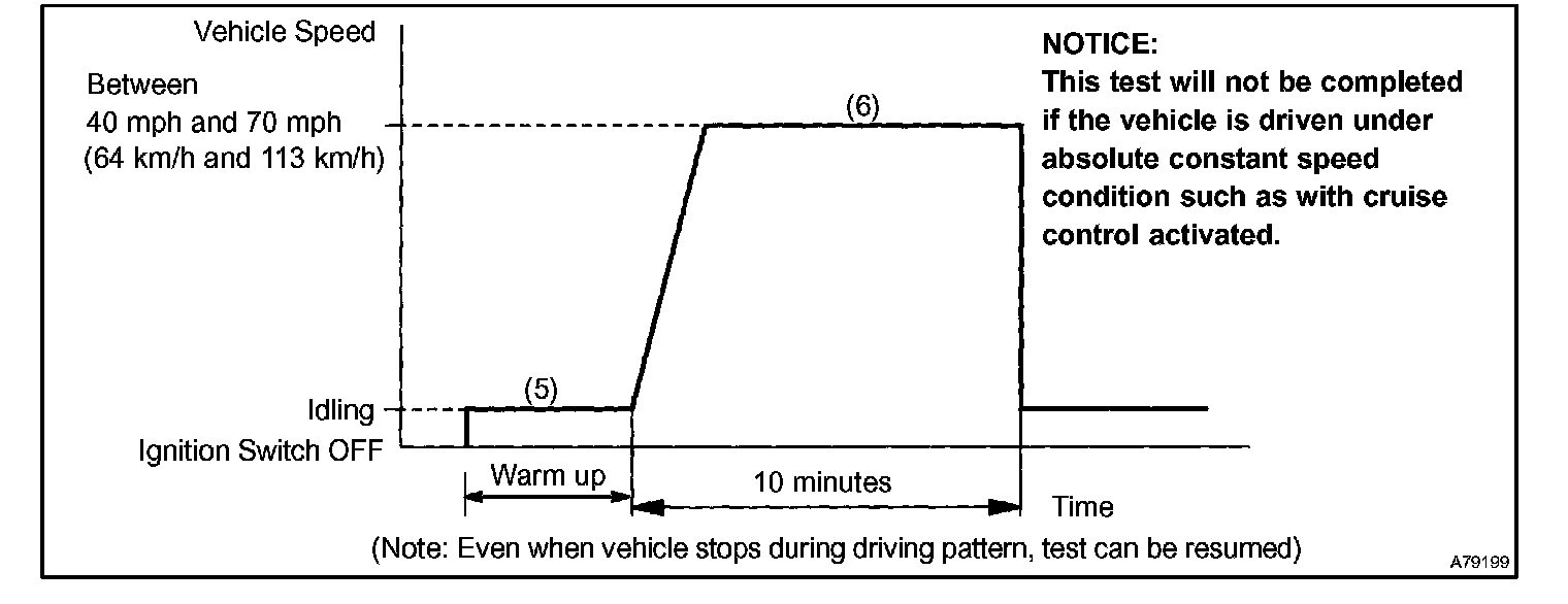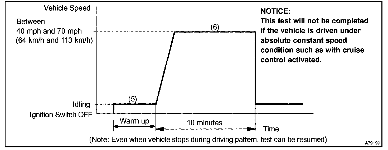 6. Drive the vehicle at between 40 mph and 70 mph (64 km/h and 113 km/h) for at least 10 minutes.