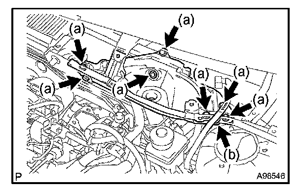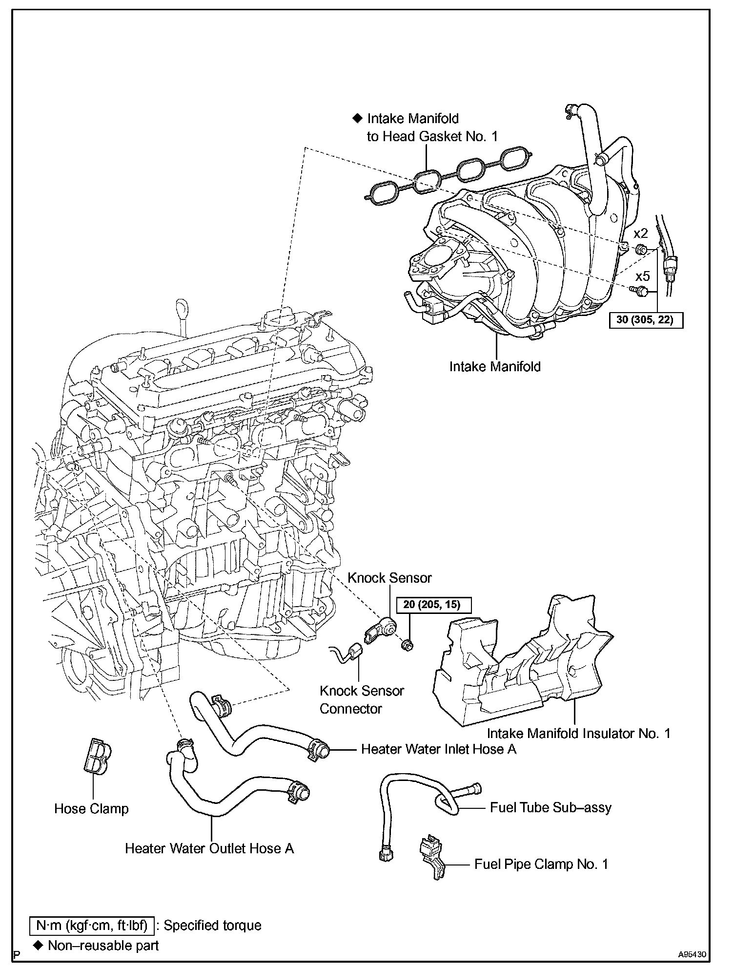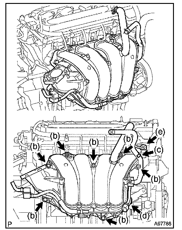 b. Install the intake manifold with the 5 bolts and 2 nuts.