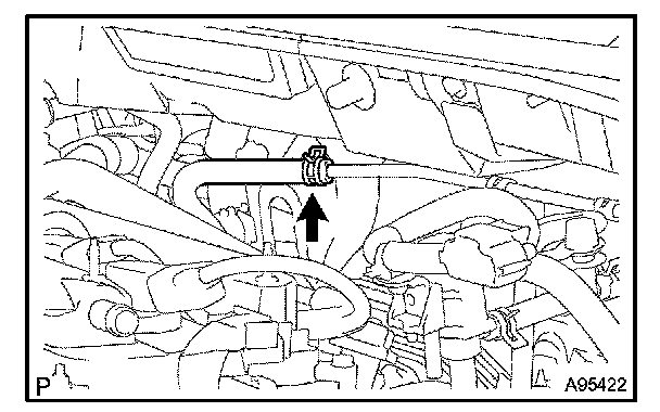 b. Remove the heater water inlet hose from the heater radiator unit and cylinder head.