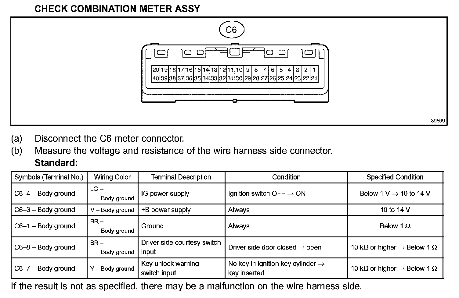 Terminals Of Control Module/Pinouts - Check Combination Meter Assy: