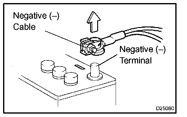 1. Before performing electronic work, disconnect cable from the battery's negative (-) terminal to prevent component and wire damage caused by accidental short circuits.