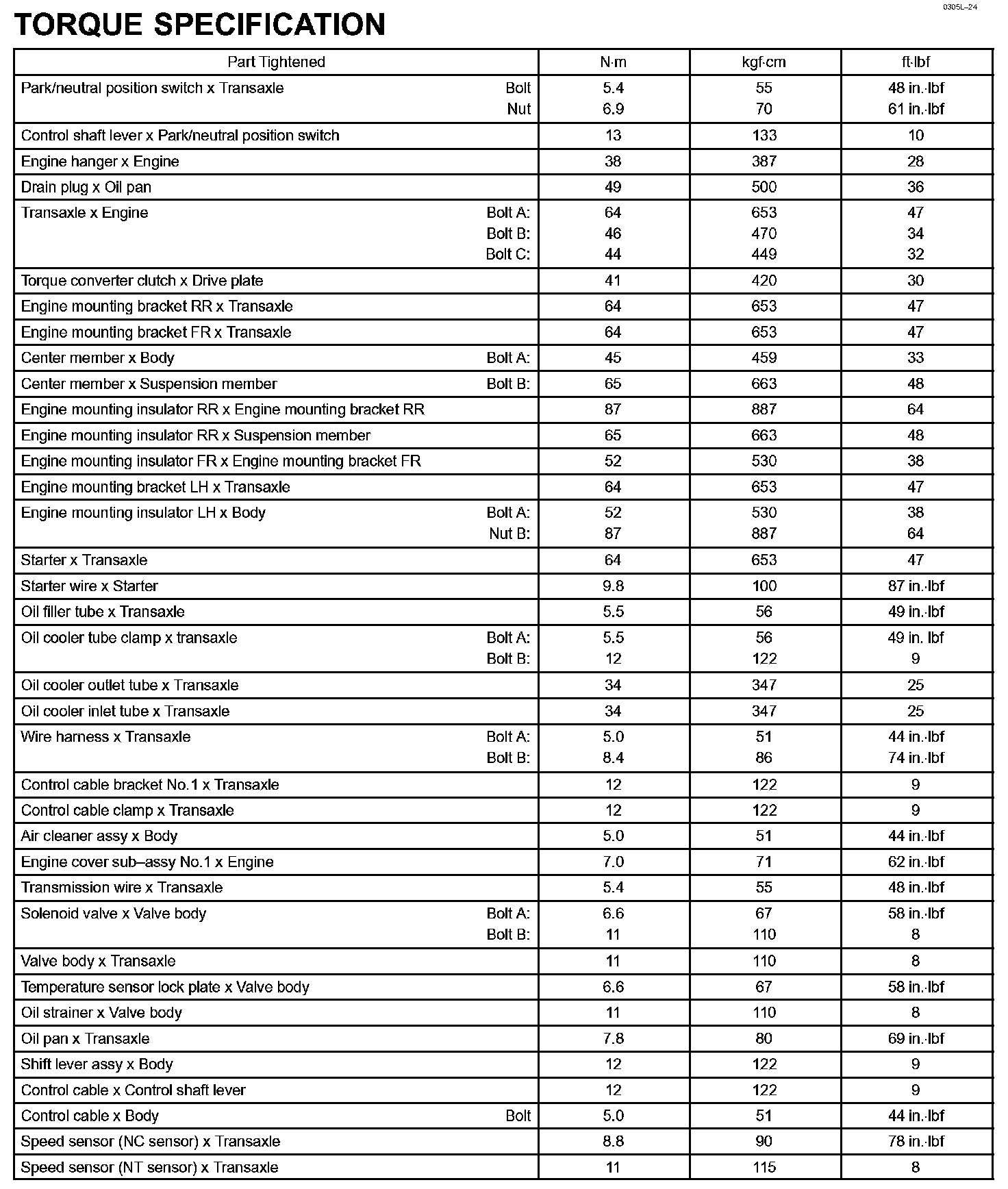 Automatic Transmission / Transaxle - Torque Specification: