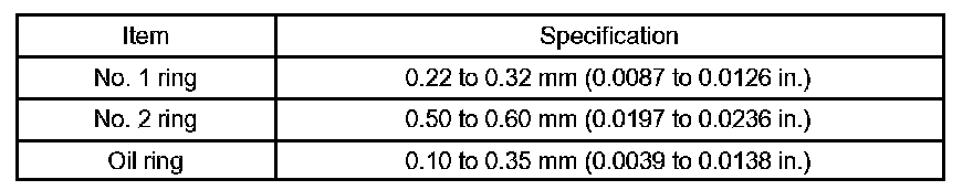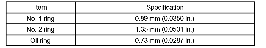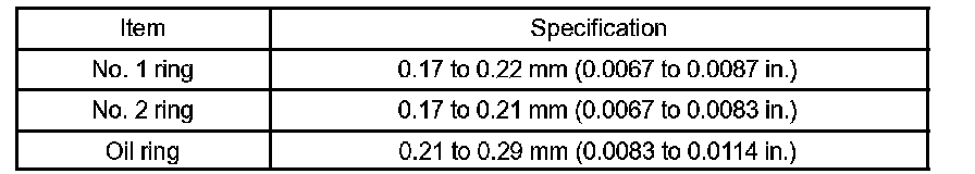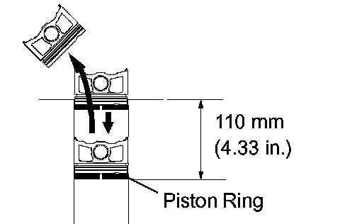 Using a piston, push the piston ring a little beyond the bottom of the ring travel, 110 mm (4.33 inch) from the top of the cylinder block.