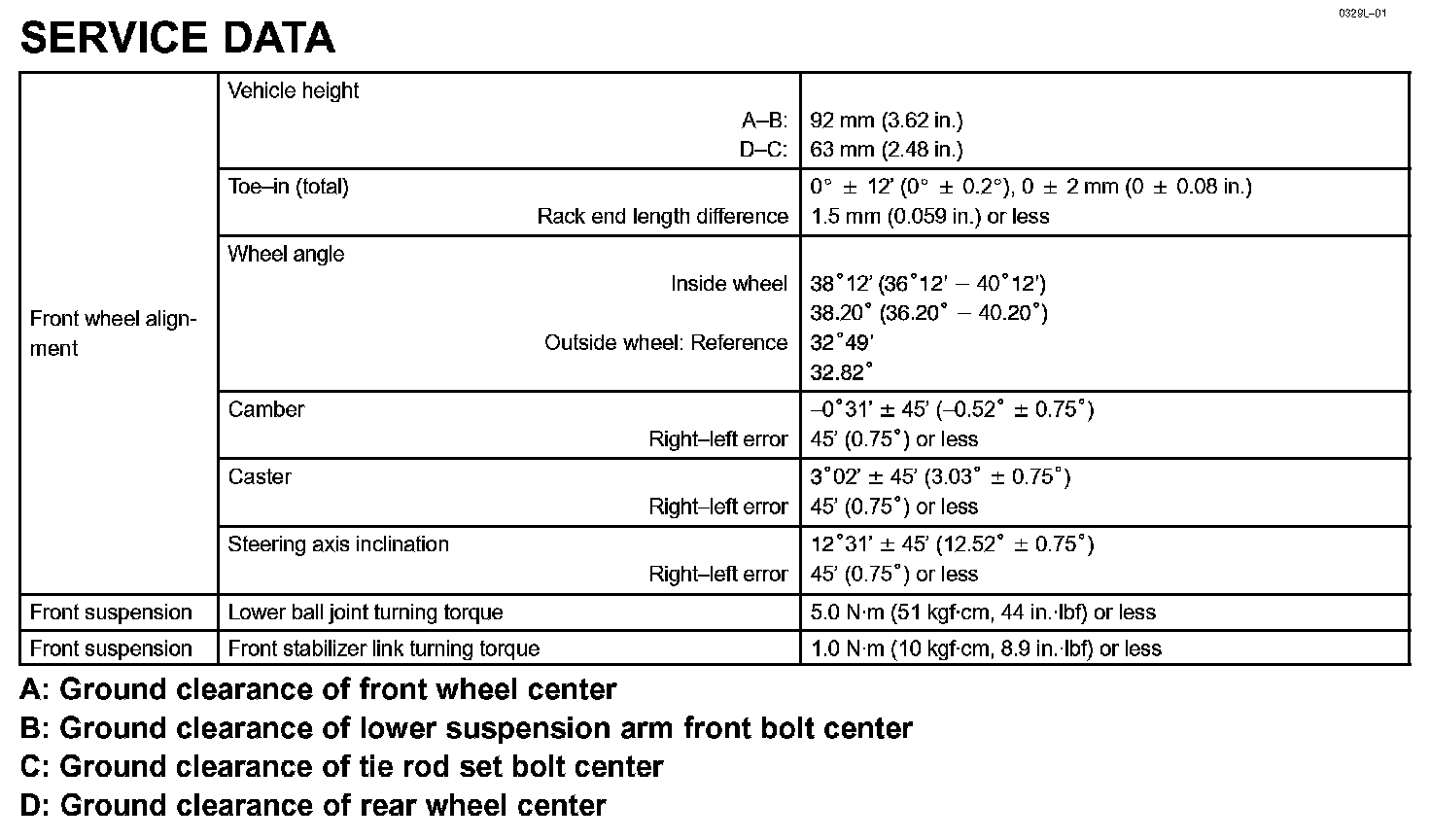 Front Suspension - Service Data: