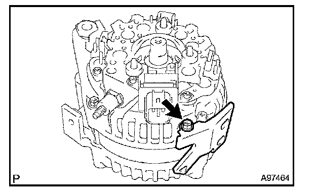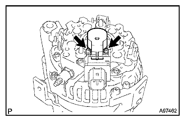 d. Remove the 2 screws, then remove the generator brush holder.