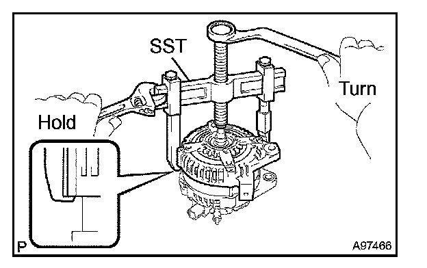 a. Tighten SST 1-B to the specified torque, then fix SST 1-A on the generator rotor shaft.