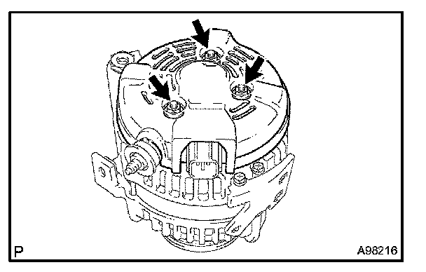 b. Remove the 3 nuts, then remove the generator rear end cover.