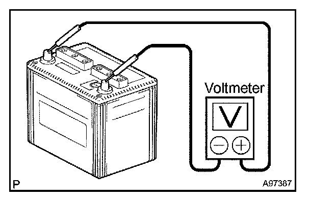 4. Using a voltmeter, measure the battery voltage between the negative (-) and positive (+) terminals of the battery.