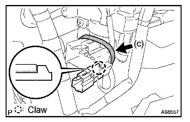 d. Using a small screwdriver, separate the claw fitting, then remove the connector of the unlock warning switch.