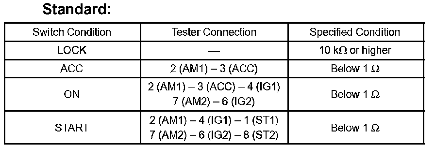 INSPECT IGNITION OR STARTER SWITCH ASSEMBLY