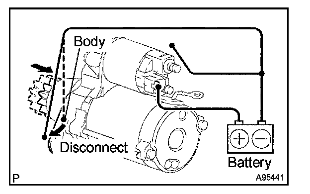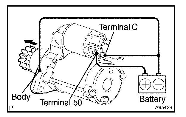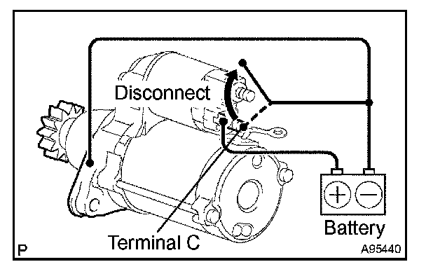1. Disconnect the negative (-) lead from terminal C. Check that the clutch pinion gear remains extended.