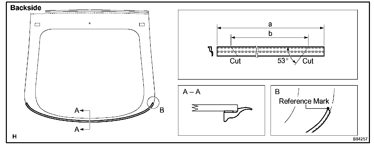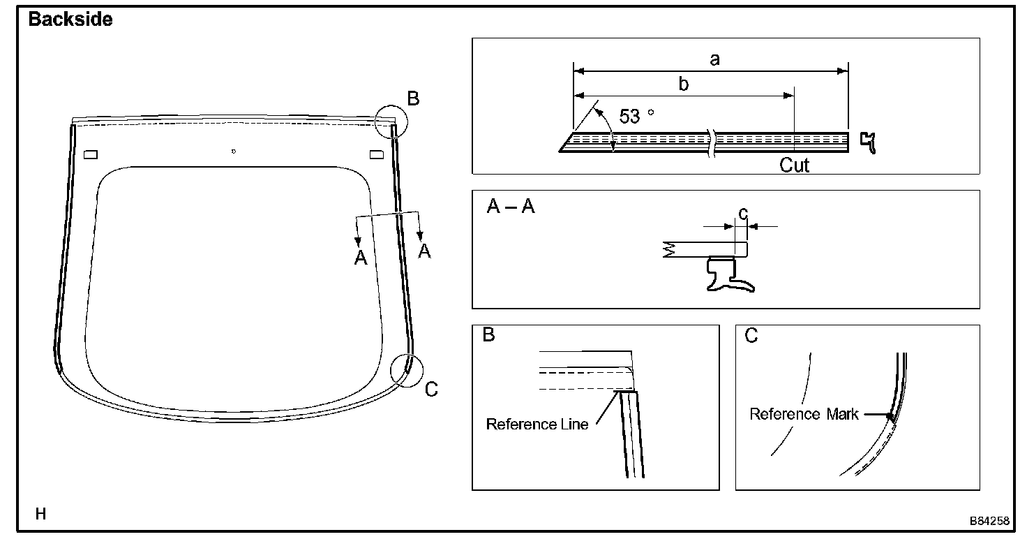 b. Install the back window glass adhesive dam kit as shown in the illustration.