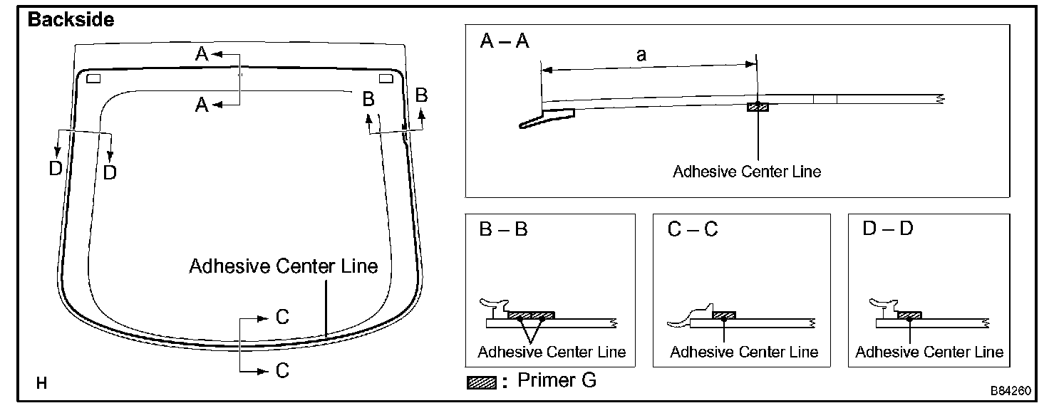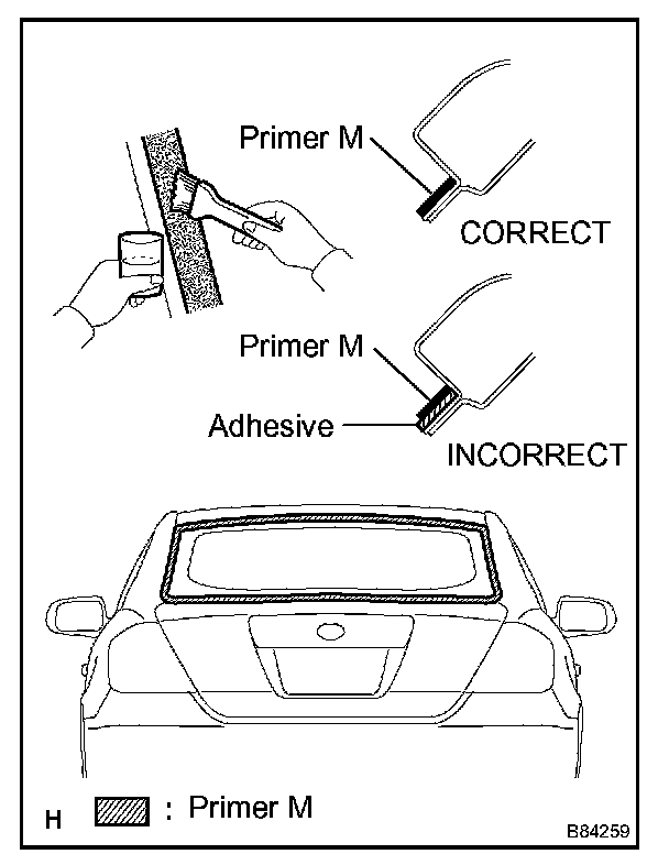 b. Using a brush or sponge, apply Primer G to the contact surface of the back door glass.