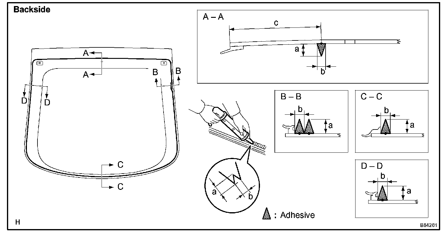3. Apply adhesive to the back door glass as shown in the illustration.