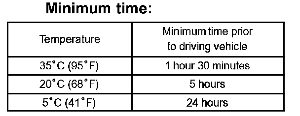NOTE: Do not drive the vehicle for the amount of time written in the table.