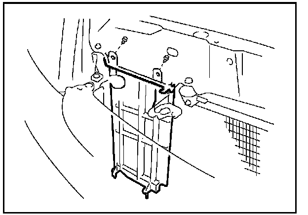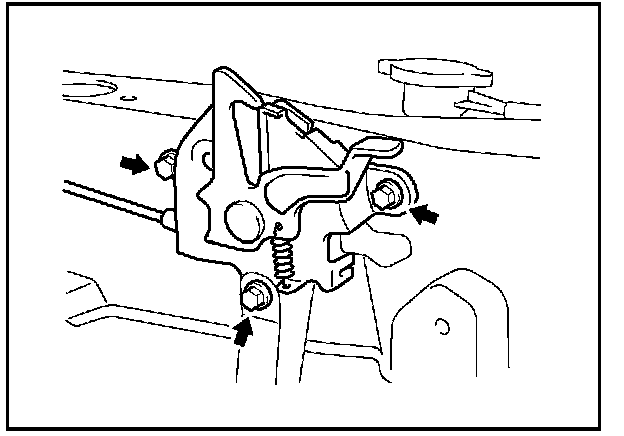 B. Remove the 2 bolts and hood lock support sub-assembly.