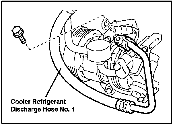 15. Remove Cooler Refrigerant Discharge Hose No. 1.