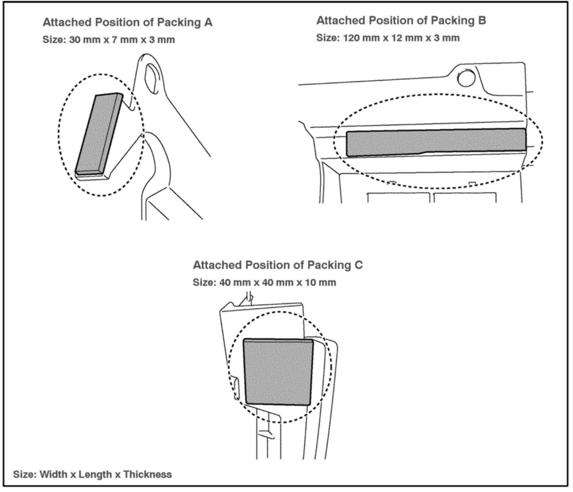 A. Attach the packing to the position shown in the illustration. (When the packing has not been attached).