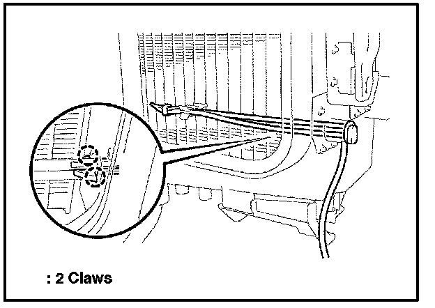 A. Disengage the 2 claws, and remove the 4 clips and radiator grille.