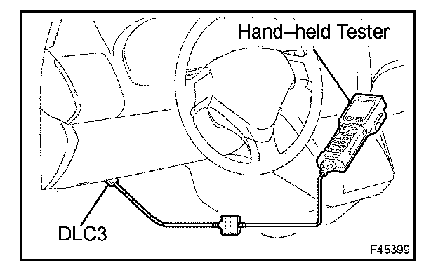 b. Connect the hand-held tester to the DLC3, then turn the ignition switch ON.
