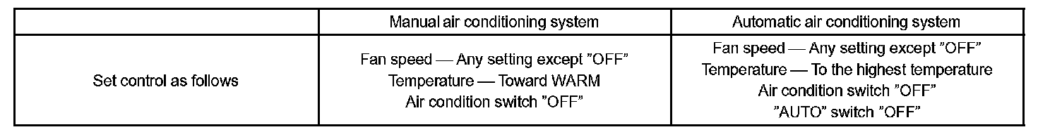 ^ Set the air conditioning as follows while warming up the engine.