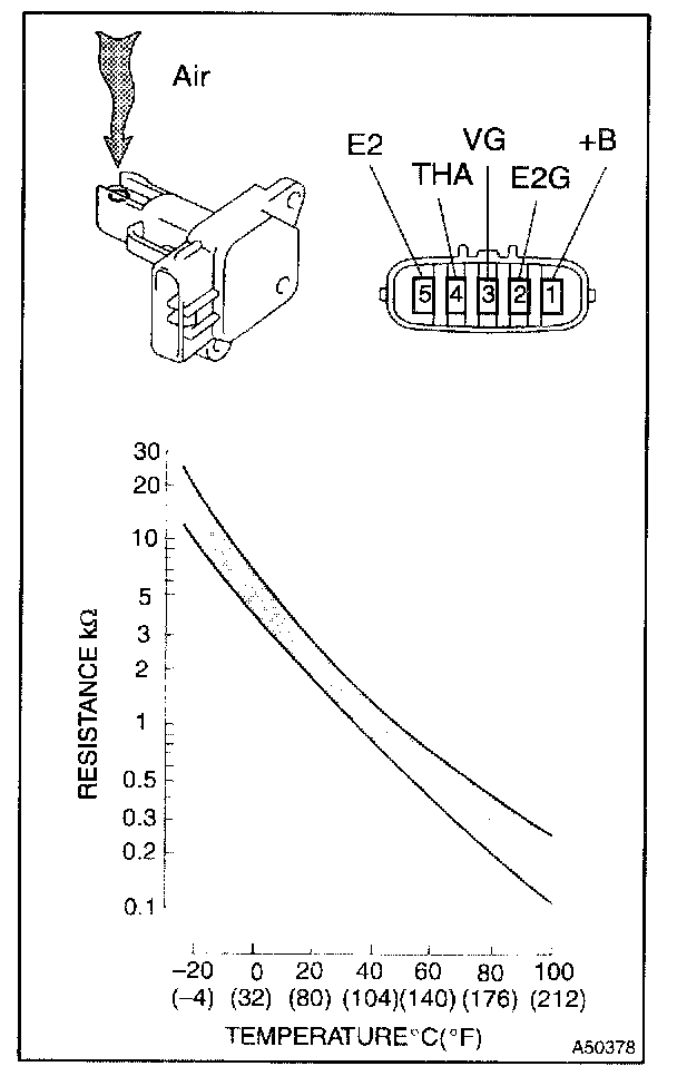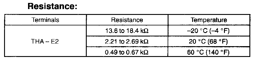 1. Using an ohmmeter, measure the resistance between terminals 4 (THA) and 5(E2).