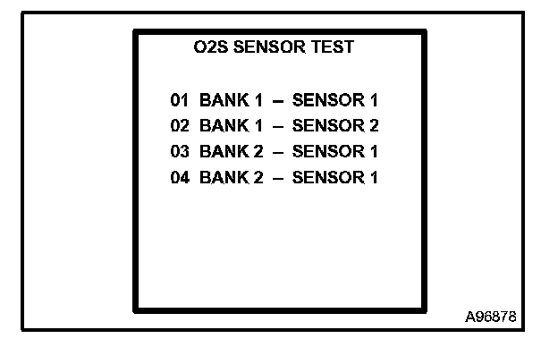 The O2S Test Result is part of the monitoring for Heated Oxygen (HO2) sensor malfunctions. The various states (Test Items) of the HO2 sensor are monitored by the ECM. The Test Item values (Test Values) can be read using a hand-held tester or OBD II scan tool.