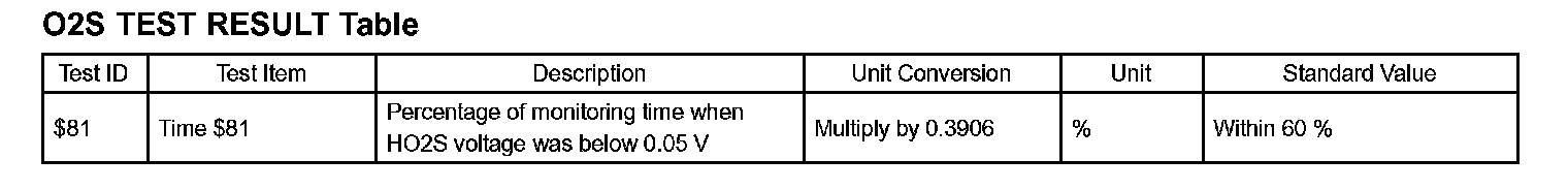 b. Use the Unit Conversion (conversion factor value) in the O2S Test Result table to calculate the Test Value.