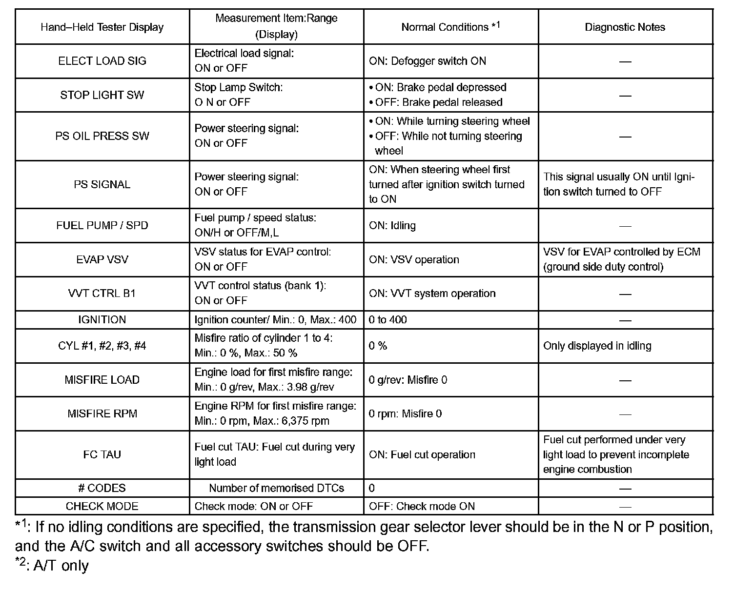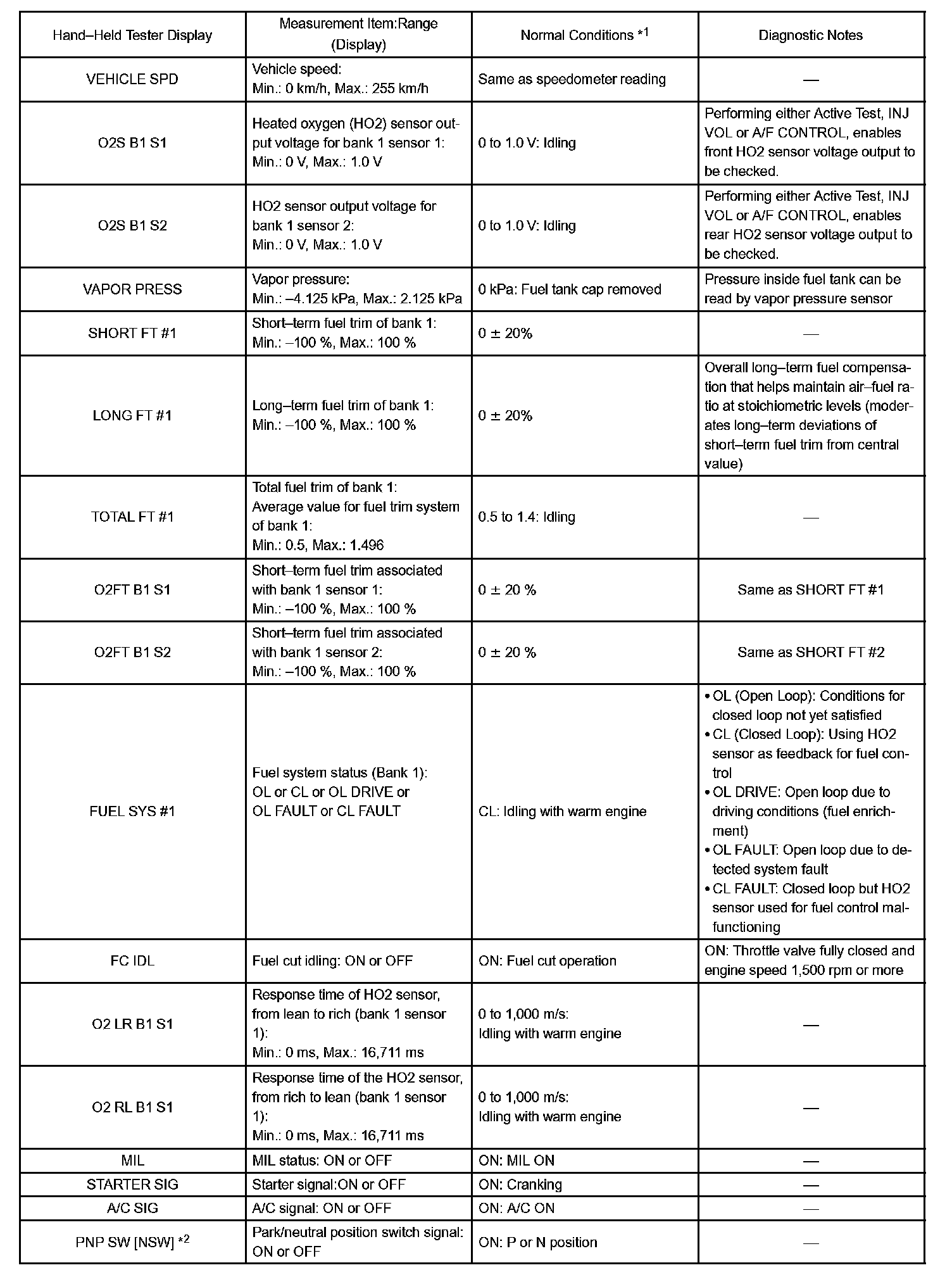 HINT: By reading the DATA LIST displayed on a hand-held tester or OBD II scan tool, you can check values, including those of the switches, sensors, and actuators, without removing any parts. Reading the DATA LIST as the first step of troubleshooting is one method of shortening diagnostic time.