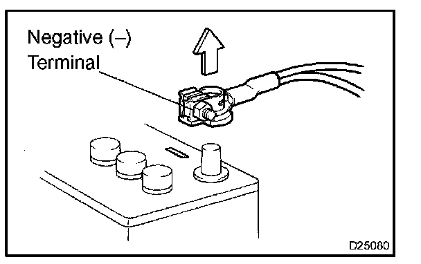 1. Before performing electronic work, disconnect the cable from the battery's negative (-) terminal to prevent component and wire damage caused by accidental short circuits.