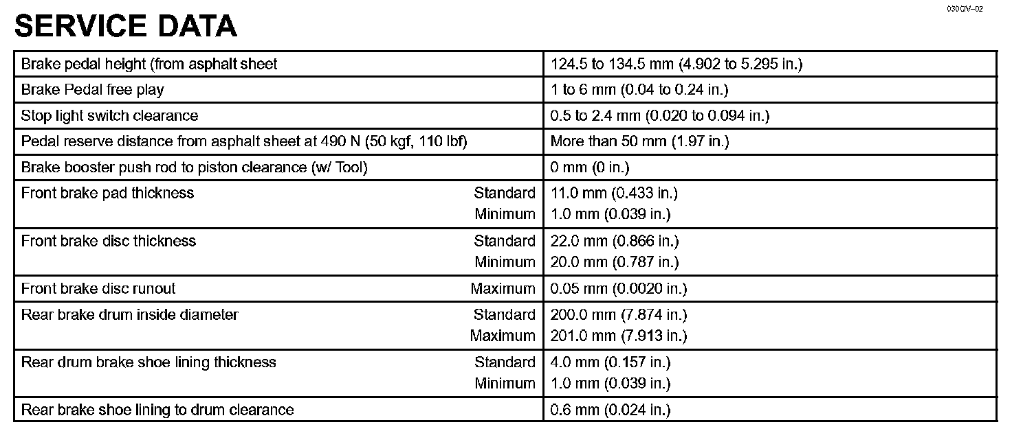 Brake - Service Data: