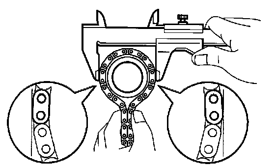 NOTICE: When measuring the diameter, vernier calipers must be in contact with the chain roller.