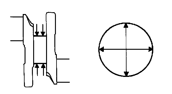 Using a micrometer, measure the diameter of each main journal as illustrated.