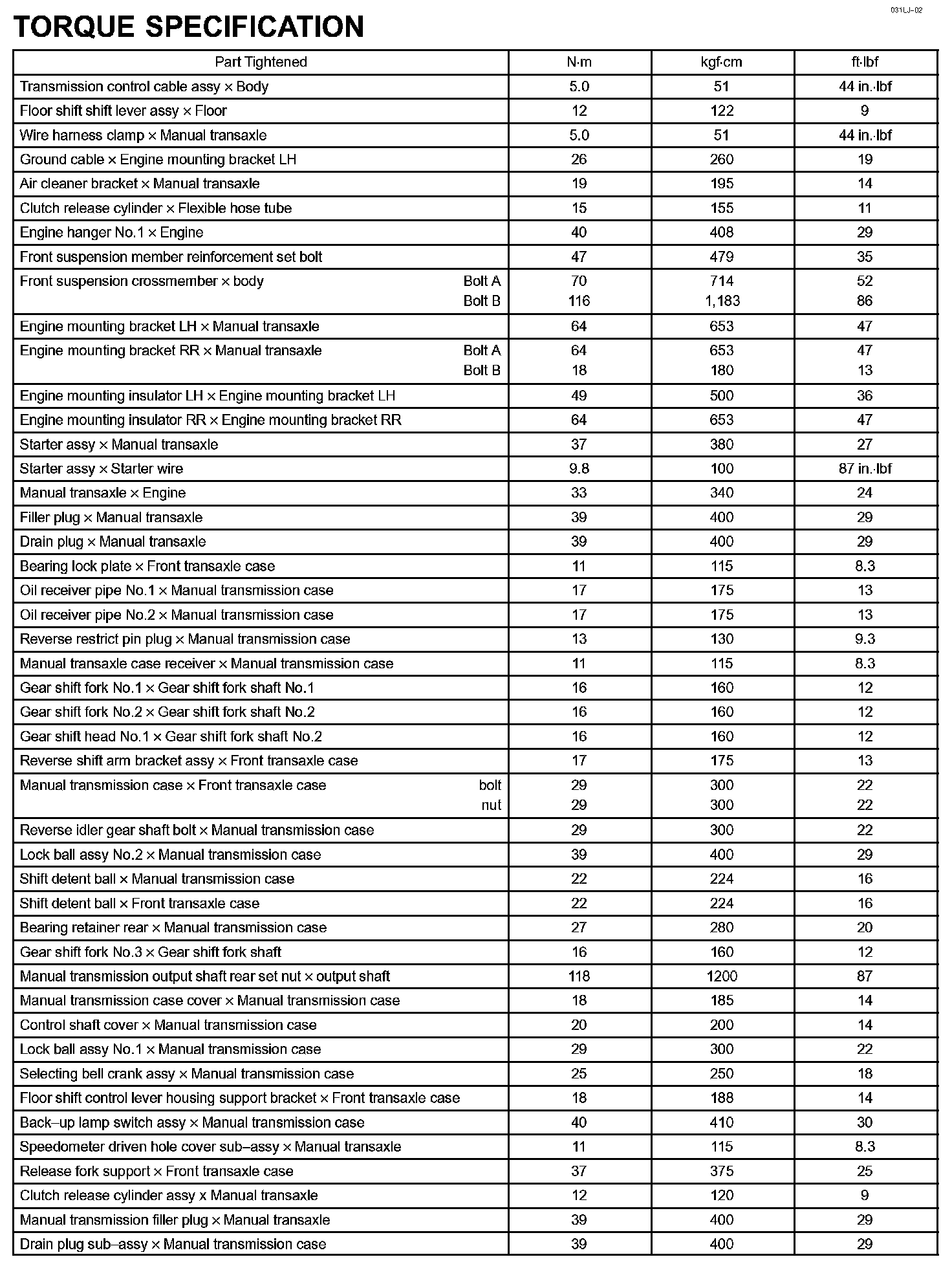 Manual Transmission / Transaxle - Torque Specification Part 2: